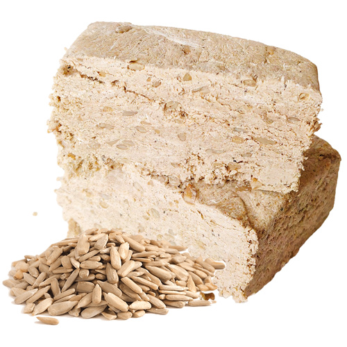 Халва подсолнечная — это традиционное восточное лакомство с классическим вкусом семян подсолнечника, в котором попадаются целые ядра подсолнуха. Халва изготовлена из тертых и цельных ядер подсолнечника и имеет крошливую структуру. Это очень вкусный и сытный десерт для домашнего чаепития, который особенно хорош с чаем с молоком