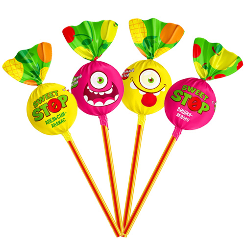 Леденцовая карамель на палочке с жевательной конфетой внутри