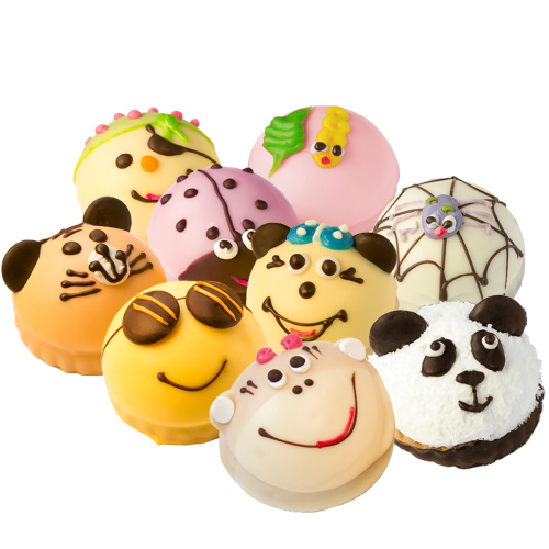 Нежный десерт состоит из песочного печенья, суфле с бусинкой фруктового желе в середине, и все это покрыто слоем белой или шоколадной глазури. Десерт нежный, вкусный, оригинальный внешне (барашки, мишки, вани-капитани, смайлики и др.)