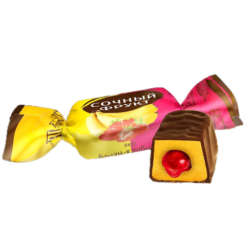Нежнейшая помадная конфета с начинкой со вкусом банана и клубники