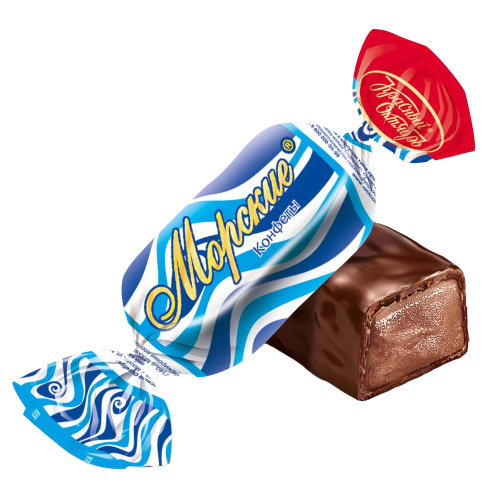 Конфеты «Морские» имеют вкус молочной помадки с какао и ромовым ароматом, терпкий и насыщенный, с тающей текстурой и богатым послевкусием. Конфета покрыта волнистой шоколадной глазурью