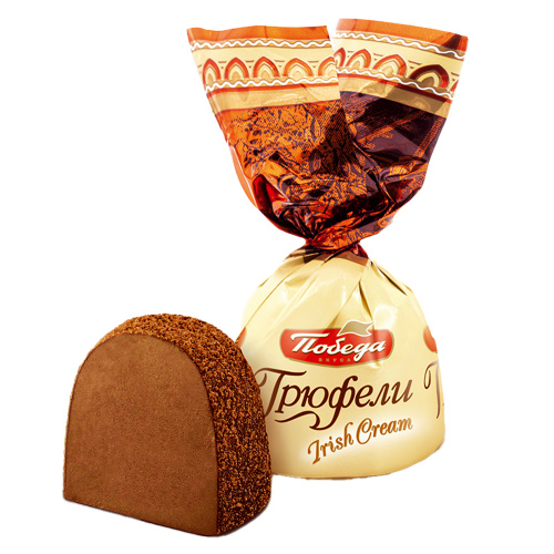 Конфеты с начинкой из шоколада и сливок, посыпанные темным какао с капелькой ликера айриш крем