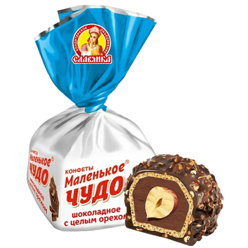 Вафельные конфеты с нежной шоколадно-кремовой начинкой, целым орехом, посыпанные дробленым арахисом и покрытые шоколадной глазурью
