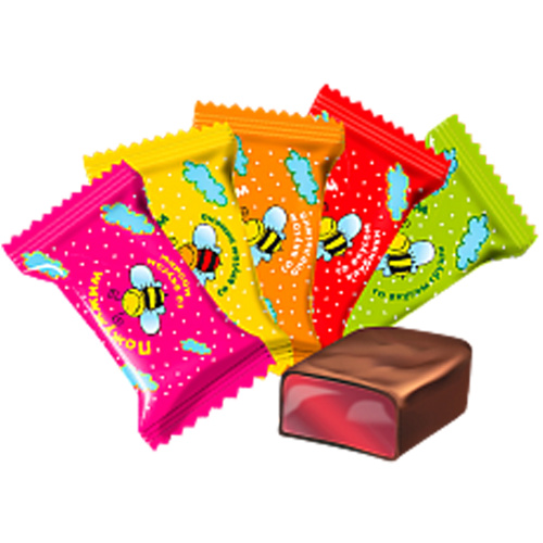 Микс глазированных желейных конфет со вкусами: абрикоса, малина, груша, клубника, апельсин, лимон