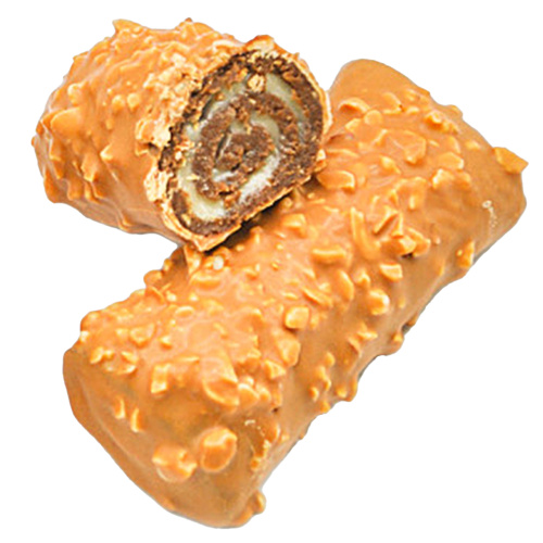 Пирожное с шоколадно-сливочной начинкой, в глазури, посыпано орехом