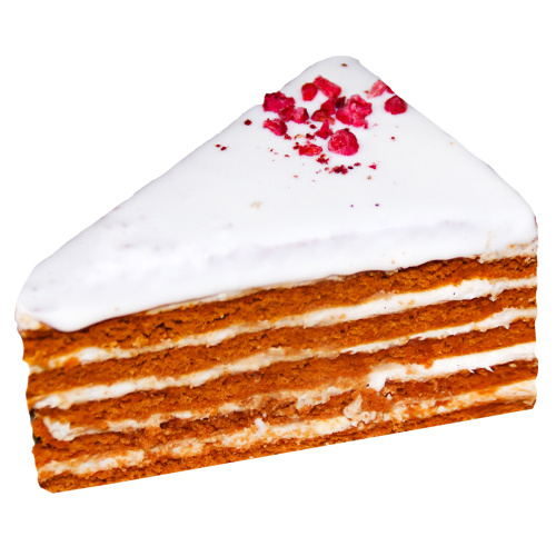 Мягкое пирожное состоящее из медовго бисквита, сливочного крема и украшено глазурью со вкусом пломбира