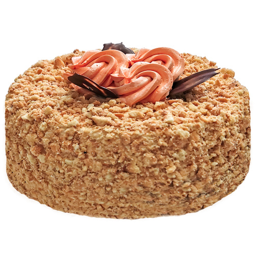 сиропом и соединены сливочным кремом со сгущенным молоком. Торт покрыт глазурью карамельной и украшен взбитыми сливками.